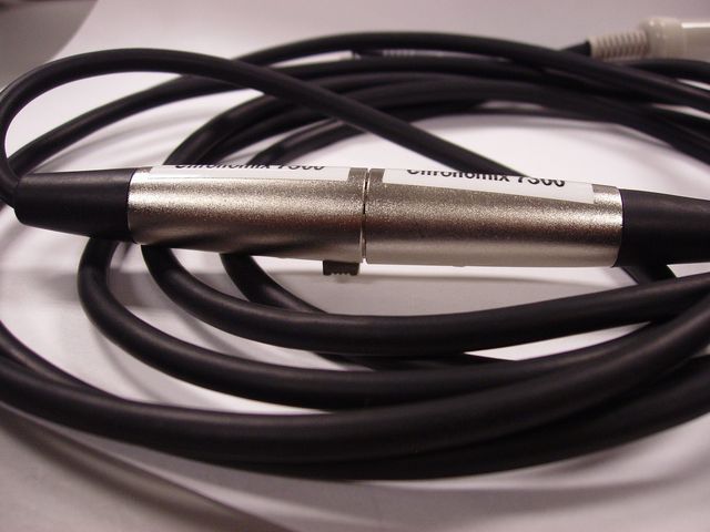 - Connect the adapter to the FinishLynx to Chronomix cable.
