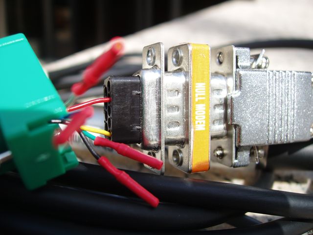 I had to make that cable adapter quickly with exsiting parts. If I had time to make another cable, I would have used an adapter that had a DB9 (male) connector. That would have avoided the, easy to misplace, null modem adapter.