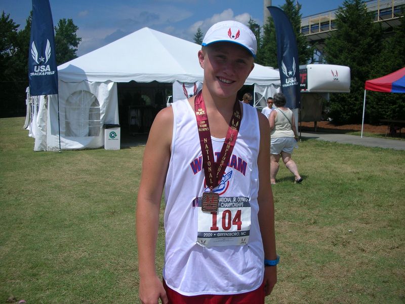 Two other teams earned silver medals in the ten age group races. Waltham Track Club Midget Girls (age 11-12, Olja Rapaic 19) and Nitehawks Sports Club Midget Boys (Max Lachance, 13) matched that place in their respective races. Final team medal winners were the Nashual PAL (Conor Canfield, 14) third in the Bantam Boys (age 10 and Under) race. Team RUN just missed a podium appearance in the Youth Girls race. In their first appearance at Nationals, they tied for third on points, but were edged on the tie-breaker (team with best fifth runner). With a number of other top 10 placings, it was the best JO showing for local clubs in a number of years.